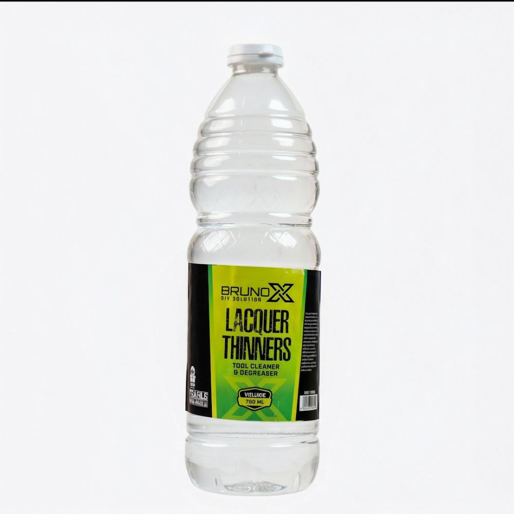 BrunoX Lacquer Thinners 750ml. Multi-purpose lacquer thinner ideal for cleaning tools, thinning lacquer-based paints, and degreasing surfaces. Fast-acting formula ensures smooth finishes and efficient cleaning.